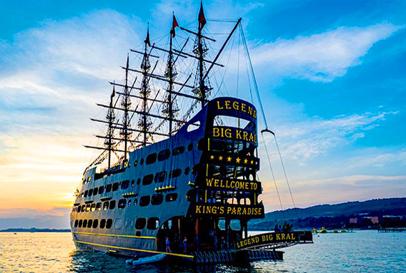 The Legend Big Kral tour is a full-day sea adventure departing from the Türkler harbor near Alanya. Designed like a majestic pirate ship, this family-friendly boat tour offers an unforgettable mix of swimming, sightseeing, live entertainment, and delicious food onboard.